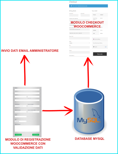 Obiettivi del progetto: Creazione di un Form di Registrazione i cui dati di input (in particolare quelli fiscali) siano collegati in automatico con il modulo checkout di Woocommerce e dunque salvati anche nel database MySqL nella tabella di Woocommerce corrispondente.